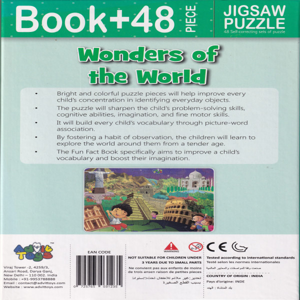 Our Wonders of World-themed book helps to enhance the knowledge of children while encouraging them to develop the habit of reading. Through its attractive illustrations, Advit Toys strives to make learning a joyful experience for kids. Not only it is fun and interactive, but also educational.